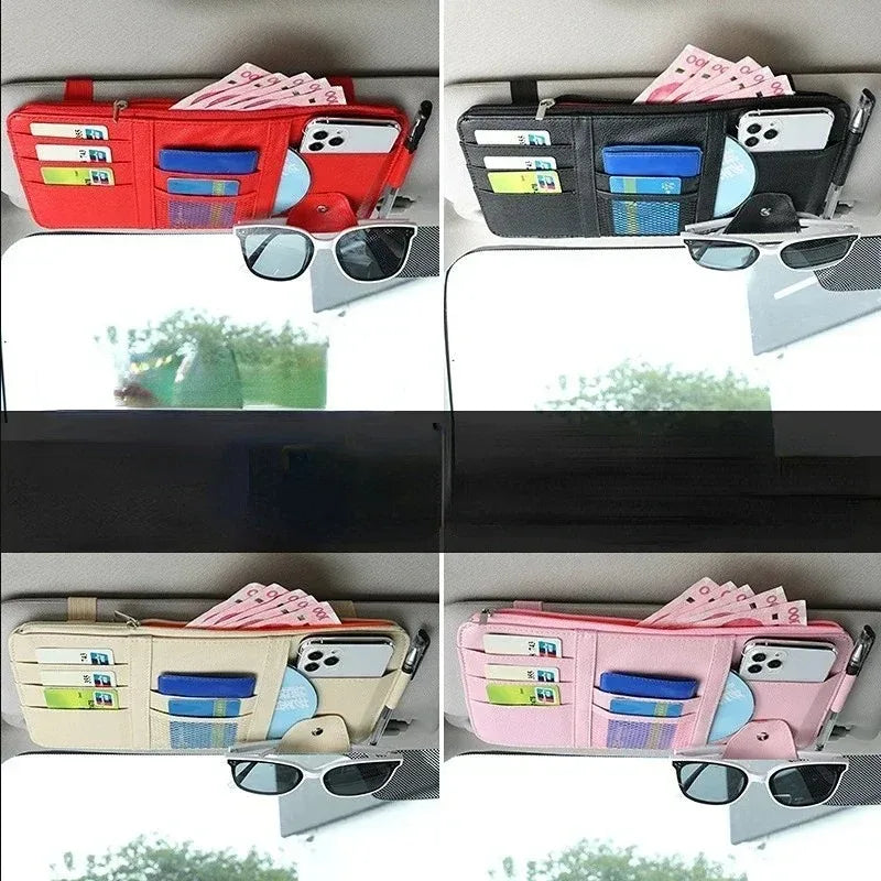 - Multiple Pockets - 1 zipped big compartment, 1 mesh deep slip pocket, 5 card holder pockets and 1 Glasses clip. Perfectly for storing your phone, sunglasses, wires, documents, cards, pens, charger cord, earphones, CD and more. it is a great storage to save space