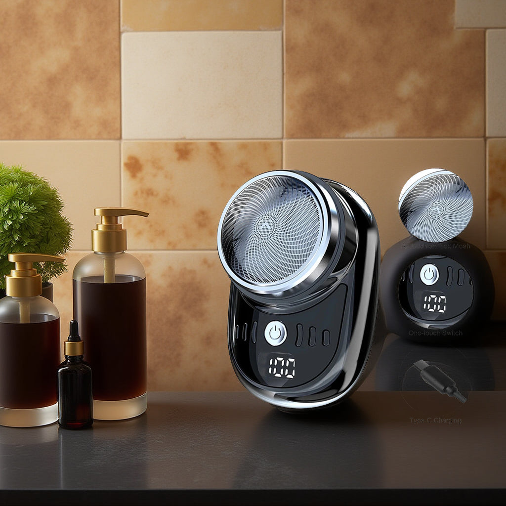Our mini electric shaver features a digital battery display and is designed for precision shaving. With sharp stainless steel turbo blades specifically engineered for tough beards.